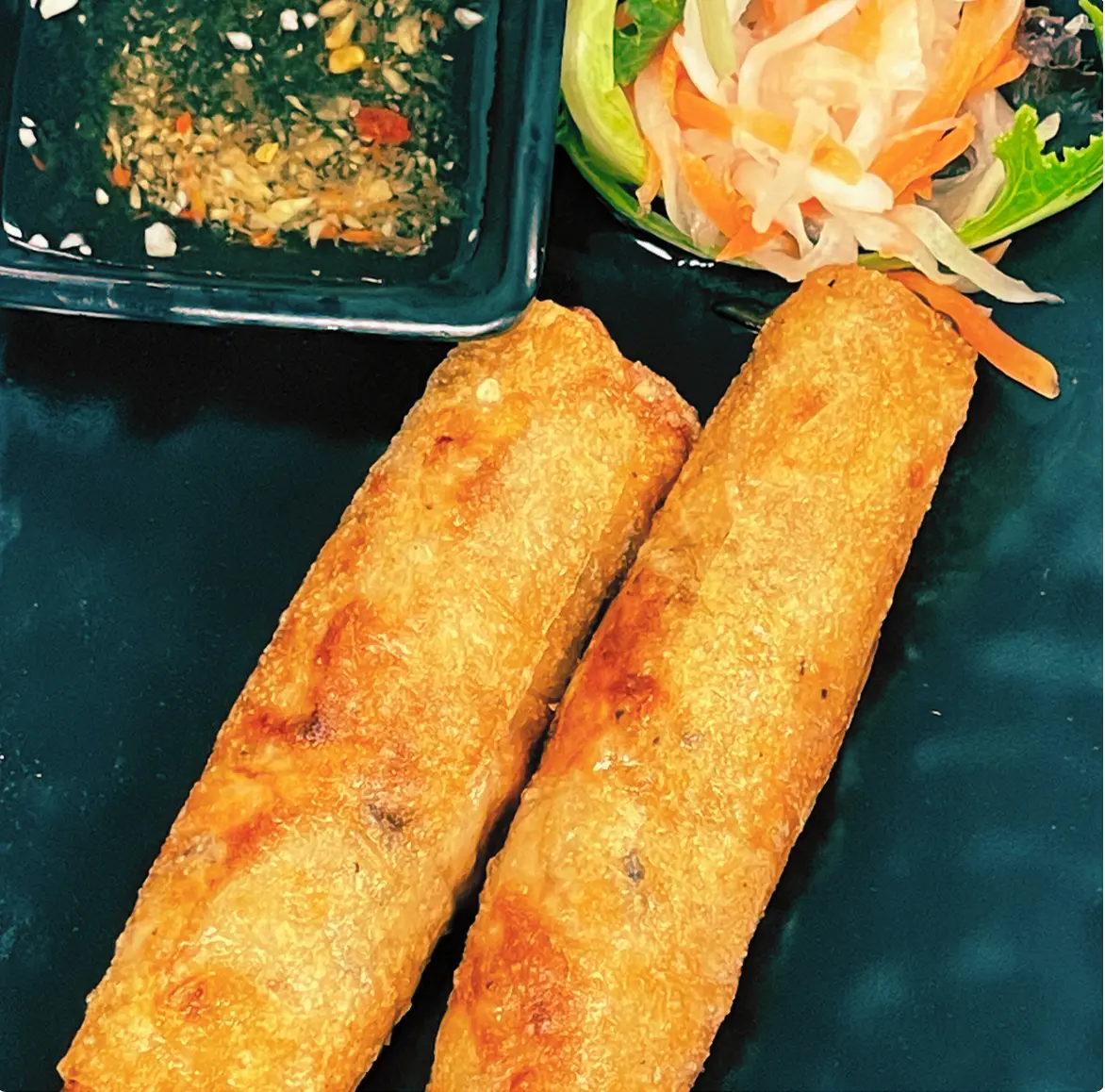 Deep-fried pork spring rolls.